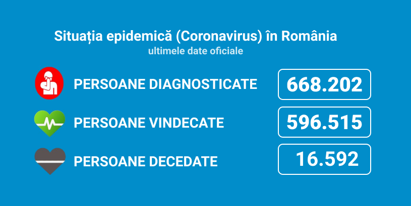 Până astăzi, 16.592 de persoane diagnosticate cu infecție cu SARS – CoV – 2 au decedat.