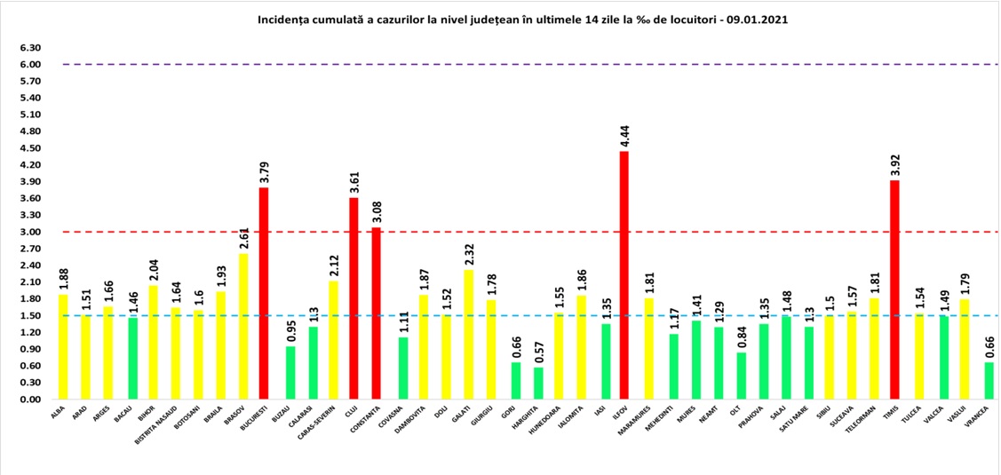 Până astăzi, 9 ianuarie, pe teritoriul României, au fost confirmate 668.202 cazuri de persoane infectate cu noul coronavirus (COVID – 19).