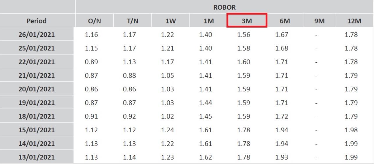 Indicele ROBOR la 3 luni, în funcție de care sunt calculate dobânzile la majoritatea creditelor în lei, a ajuns marți la 1,56%. Este cel mai mic nivel atins după 29 septembrie 2017.