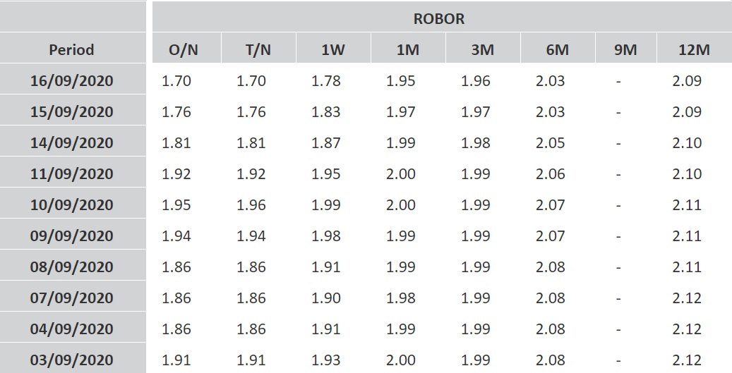 Robor a continuat să scadă constant în ultimele săptămâni, după ce BNR a hotărât reducerea ratei dobânzii de politică monetară la nivelul de 1,50% pe an, de la 1,75% pe an, în contextul pandemiei.