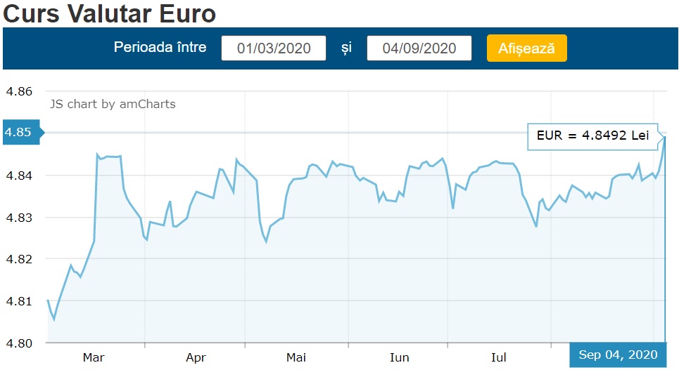Precedentul record a fost atins pe 17 martie, când a fost 4.8448 lei.