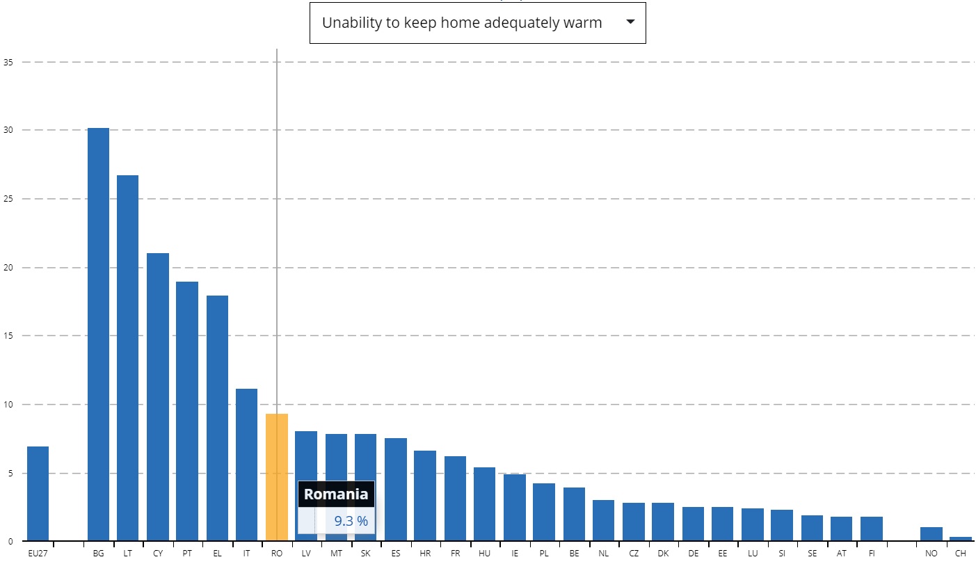 Situația este mult mai bună în România, în privința încălzirii locuințelor. Potrivit Eurostat, doar 9,3% dintre români nu își permit financiar să își încălzească casa în mod corespunzător, în timp ce în Bulgaria, procentul este de 30%.