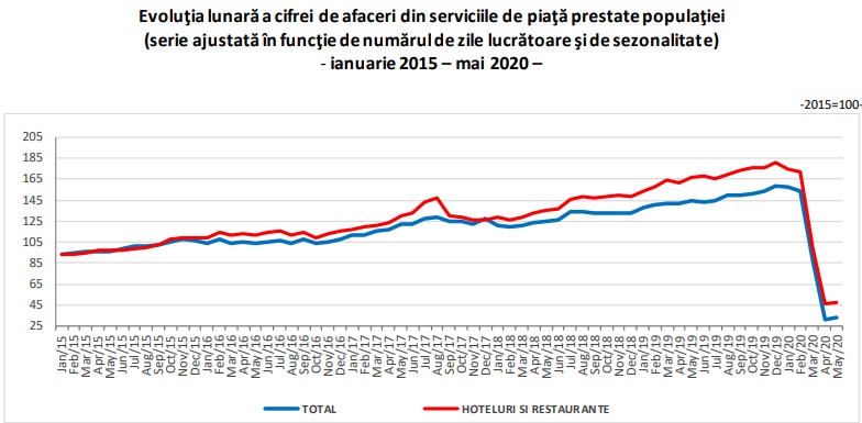 Cifra de afaceri a agențiilor turistice a crescut cu 29% față de aprilie, dar sunt tot cu 87% mai mici față de luna mai 2019. Situație similară și la restaurante, care au avut afaceri în creștere cu 40%.