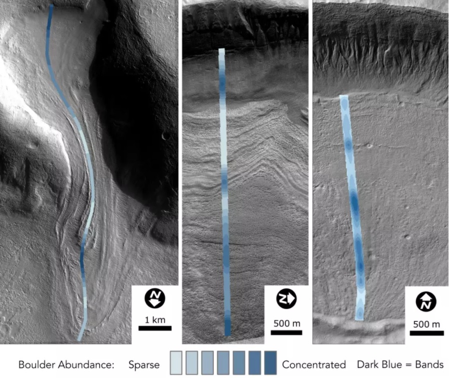 Totodată cercetătorii de la Universitatea Colgate din statul New York speră să afle din conținutul acestor ghețari dacă, la un moment dat, pe Marte a existat viață. Aceștia au studiat imaginile a 45 de ghețari, realizate de satelitul Mars Reconnaissance Orbiter lansat de NASA în 2005, iar rezoluția ridicată a imaginilor le-a permis să analizeze 60.000 de roci.